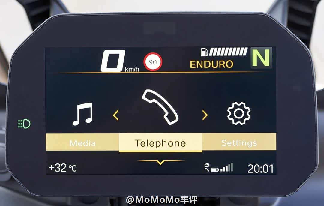 在路上打电话或听音乐也很容易。例如,如果骑车人使用TFT显示器连接智能手机和配备BMW Motorrad通信系统的头盔,他可以轻松访问媒体播放和电话功能。无需安装应用程序即可使用这些电话和媒体功能。如果与任何标准智能手机建立蓝牙连接,骑车人可以在骑车时欣赏音乐。