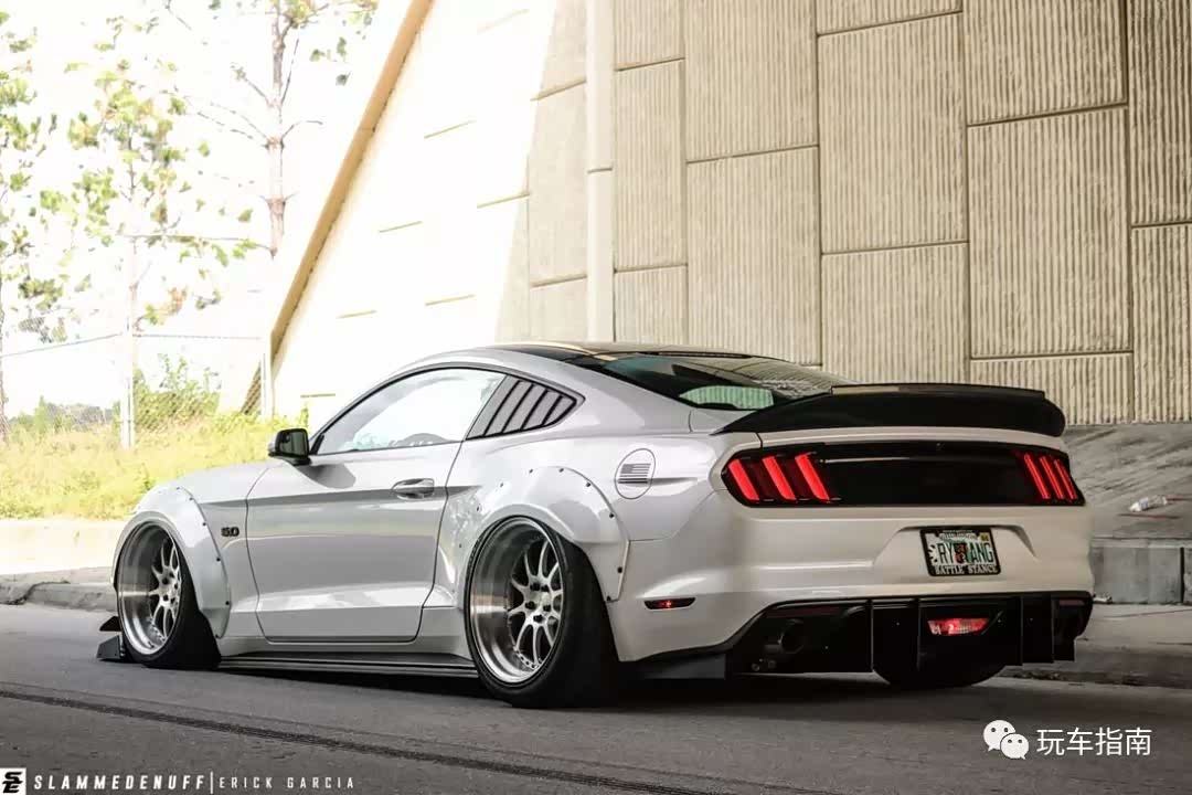 福特野马以其凶狠的造型而备受车友喜爱,当然最重要的还是入门版2.3T的性能也有314匹及434牛米的出色表现,另外改装潜力也不小。不过,对比422匹及530牛米的5.0 V8最高性能野马GT版本,4缸的2.3T就有车友戏称为野驴。而以下这辆野马GT,在改装宽体包围以及外观细节上的点缀后,整体气势非常强大,看到它绝对没人敢说野驴了!