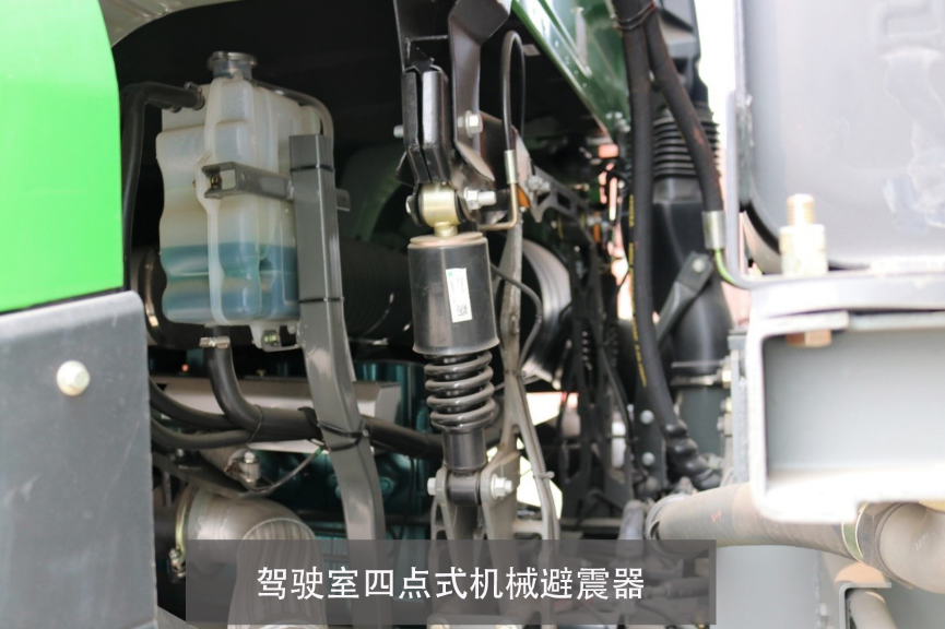 驾驶室采用4点螺旋避震器,在驾驶室减震方面有一定效果。主驾驶采用气囊减震座椅,平直路面行驶舒适性不错。但由于渣土车要经常出入工地,一些用户反映长时间驾驶还是会感觉有些颠。
