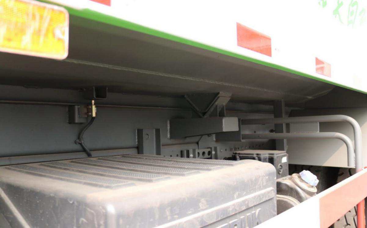 车厢底部安装有传感器,可提醒驾驶员避免货箱不落而发生意外。后门加装密封条,防止遗撒和漏水,有效避免行驶中渣土洒落。