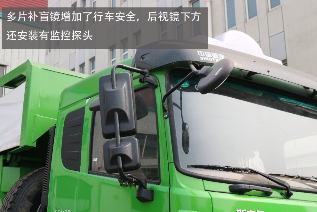 后视镜采用的分体式设计,损坏可单独更换。照地镜的伸出长度也对提高驾驶员视野有着非常大的帮助。后视镜下面装有监控探头,可实时监控,减少死角。