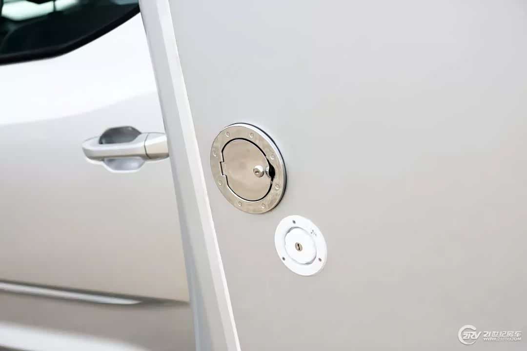 柴油加注口及净水箱注水口位于左侧后排乘客门后方,油箱盖采用金属材质,油箱容积为75升。