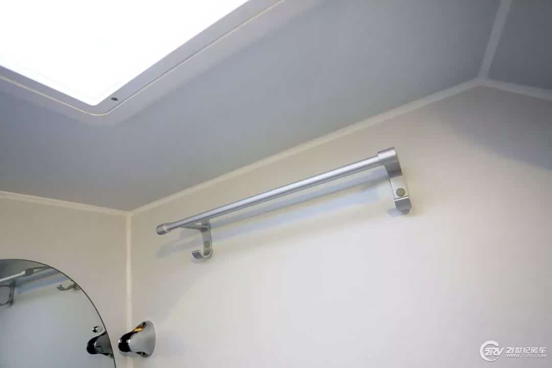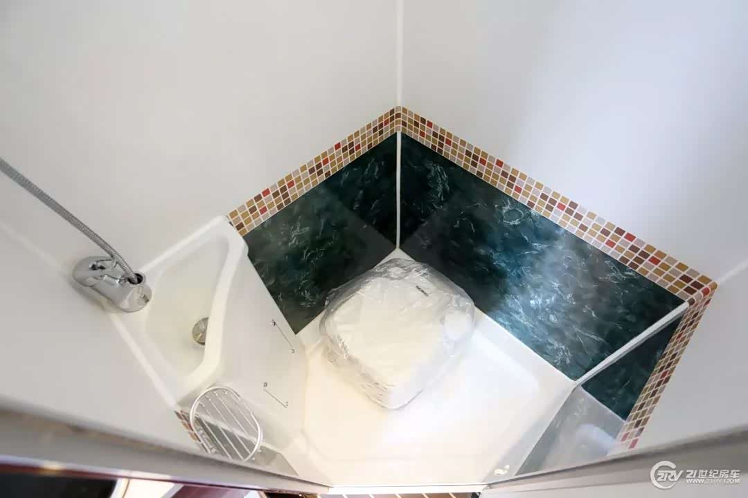 整体式卫生间与厨房区相邻,位于车厢的角落。