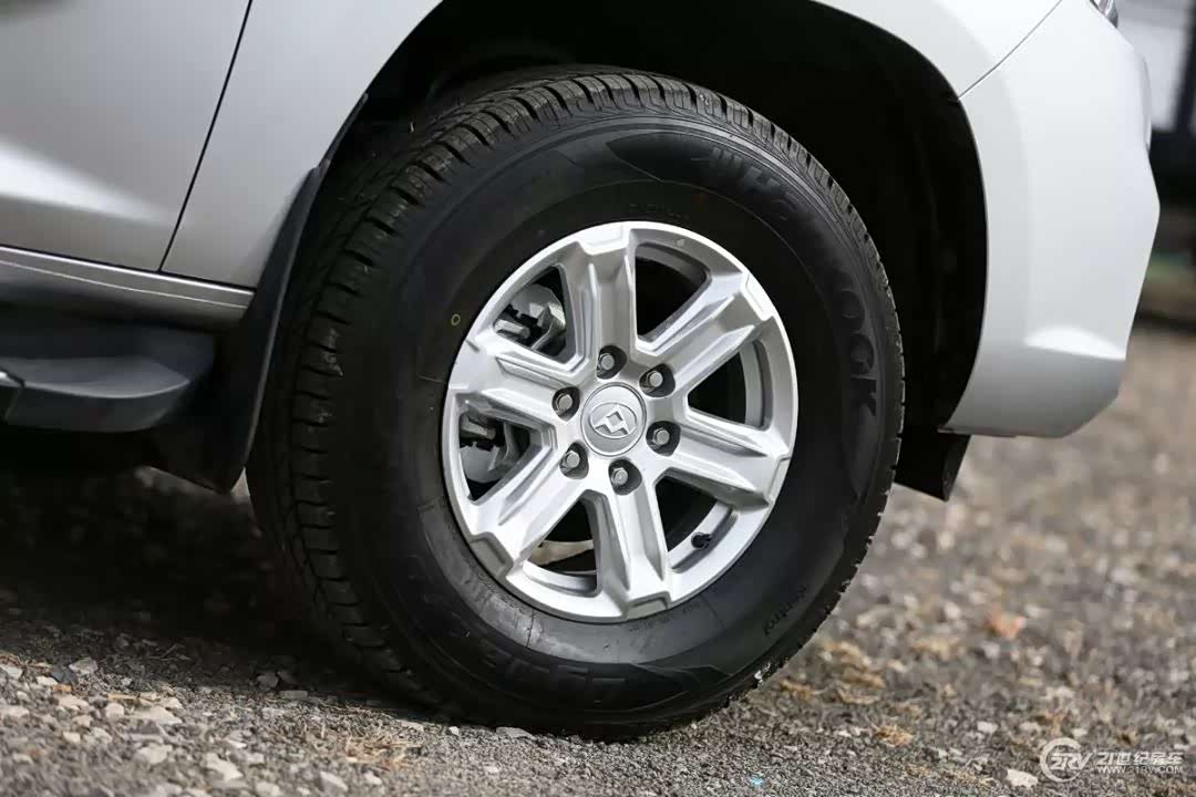 该车配备有铝合金轮毂,轮胎参数为245/70 R16,前后轮均为盘式制动,前轮为通风盘式,抗热衰退性能更好,保证长途驾驶时的安全性。
