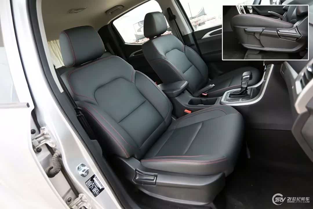驾驶室共有两排座位,车辆核载5人。座椅设计的较为宽大,坐垫及靠背均带有包裹性设计。座椅采用红色缝线,主副座椅均为手动调节,主驾驶相比副驾驶多了一个坐垫角度调节。