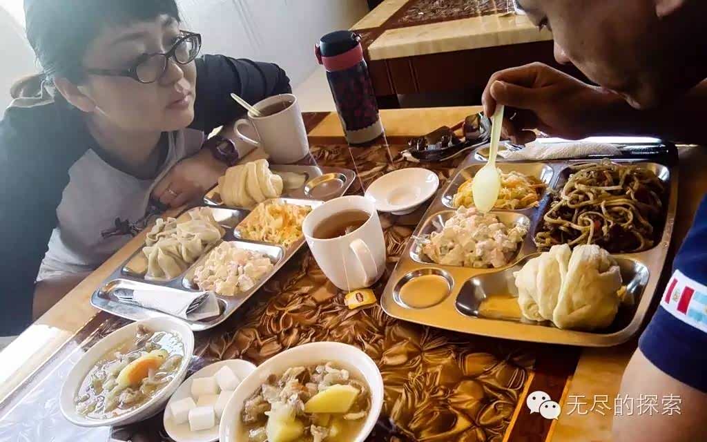 如果出门只是吃个团餐,那你旅行的意义最起码降低了一半;这是在蒙古国的晚餐。