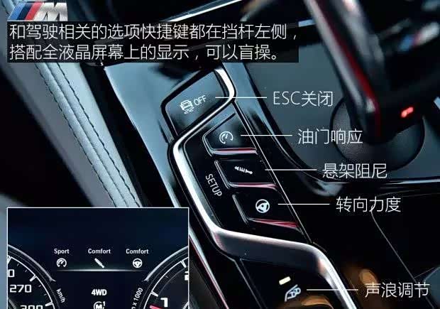 而对于全新M5,最大的改变来自M xDrive四驱系统,这让一些不明就里的人看不懂,以为将丧失后驱的驾驶风格。殊不知,全新M5的这套四驱系统可以四驱、运动四驱、后驱三种模式中自由切换,日常驾驶用普通四驱更加稳定可靠,对于技术水平一般的驾驶者需要激烈驾驶时,用运动四驱模式,此时动力以后驱为主前驱为辅,允许后驱有一定的打滑幅度,能够享受到转向过度的同时还能保证安全性。而对于驾驶技术较高的朋友,后驱模式依然保留着最转向过度设定,反手打方向、侧滑过弯或漂移过弯都不在话下。