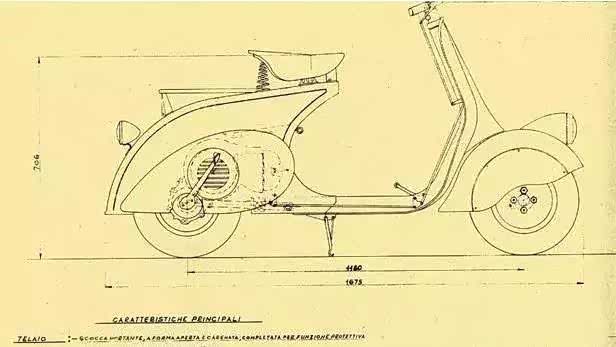 1946年4月23日,一项由Piaggio公司发出的专利申请在向位于佛罗伦斯的产业暨商业部中央专利局出现,专利描述为「以合理方式将各种器械与组件组装而成的摩托车,车身与挡泥板及引擎盖结为一体,可完全罩住所有的机械零件」。这也是Vespa诞生的一天。