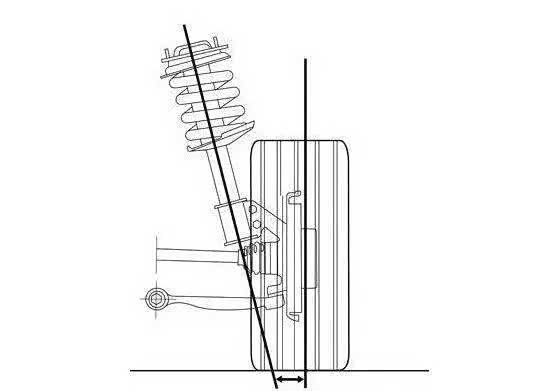由于悬挂主销具有内倾角和后倾角,所以,在车轮上下运动时,减震器下支点随横摆臂摆动,主销的内倾角和后倾角也会随之变化,因此这种悬挂如果发生变形,会大大影响汽车的操控性能,并导致轮胎寿命降低,转向过沉或过轻等。