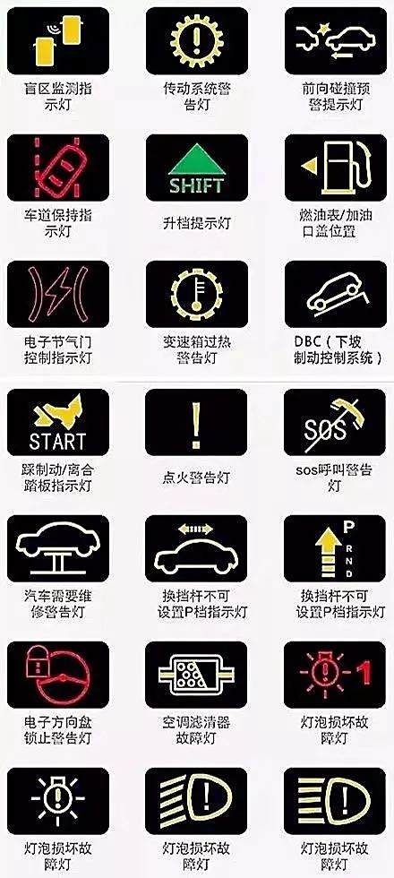 建议大家可以把这篇文章收藏起来,万一哪天爱车的故障灯亮了,又不知道怎么回事,就可以打开这篇文章对照着来检查,那就放心很多了!