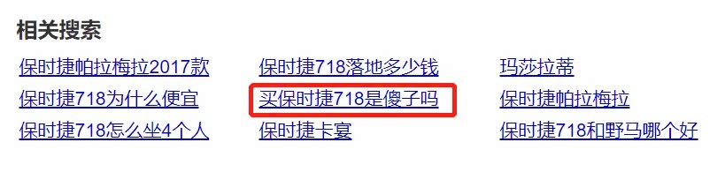 2016年保时捷718系列跑车在国内上市,指导价居然下探到了58.8万,这可让保时捷跑车的门槛降低了很大一截,但是由于改为2.0T小排量涡轮增压发动机的原因也饱受争议。就在某一次搜索718的时候我看到了这样的相关搜索…