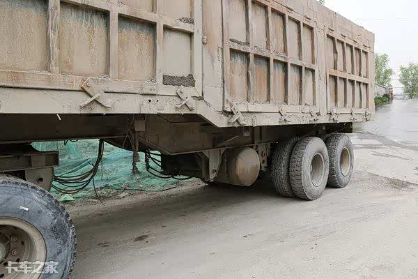 挂车采用侧翻的方式来进行卸货,从而提高整车的运营效率,尾部的液压油缸可以帮助挂车在卸完车后陷入沙堆脱困,常年的使用让液压油缸的操作杆出现了黑色的包浆,极具收藏价值。
