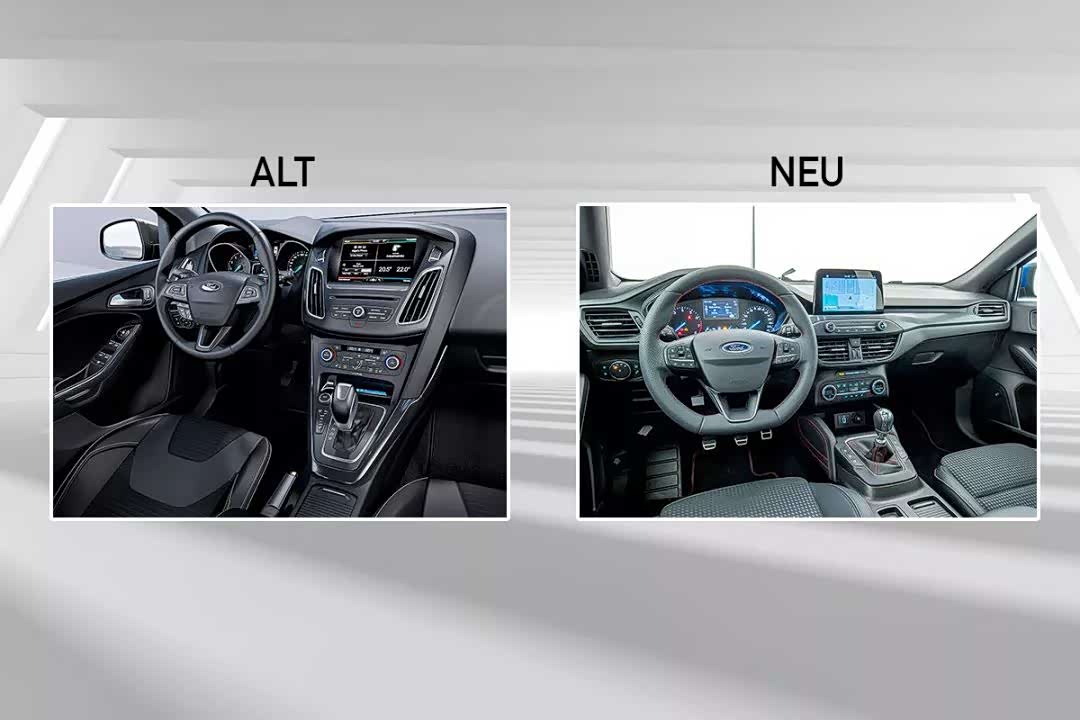 新一代福克斯沿用了全新嘉年华的设计,变化巨大。与老款车型相比,新一代车型的内饰设计更加简洁,不过中央的悬浮式显示屏已经不是什么特别新鲜的东西。虽然单单用肉眼无法感知,但是由于短前轴的设计,新一代福克斯的仪表台几乎向前移动了100mm,这样带来的好处就是车内空间会更大。