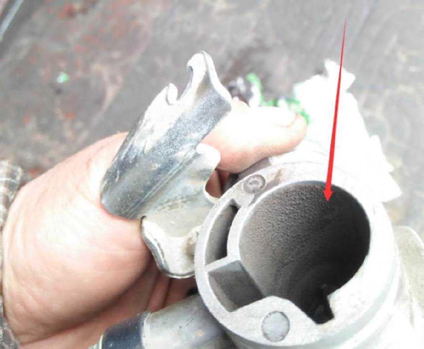 换上新火花塞,故障还是一样。拨下空滤接口,发现节气门本体上有很厚的一层灰泥,可能有很长时间没有清理了,这是车主保养意识不强造成的。