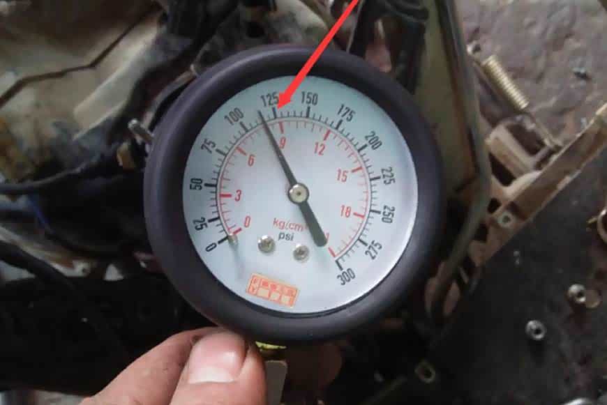 重新调整后复装,故障还是一样。没有找到根源?那就再来,测个气缸压力值,有8.5kg。