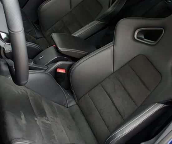 Alcantara面料其实是一种仿麂皮的人造革,但是它比真皮轻得多。把真皮换成这种材料后,兰博基尼的超级跑车减轻了5公斤的重量。另外Alcantara的摩擦系数特别高,在激烈驾驶中很少打滑,这让它很适合包裹在方向盘或者运动座椅上。这种特性对高性能车尤其重要,高尔夫R的座椅,迈凯伦650S的方向盘,都采用了Alcantara面料。