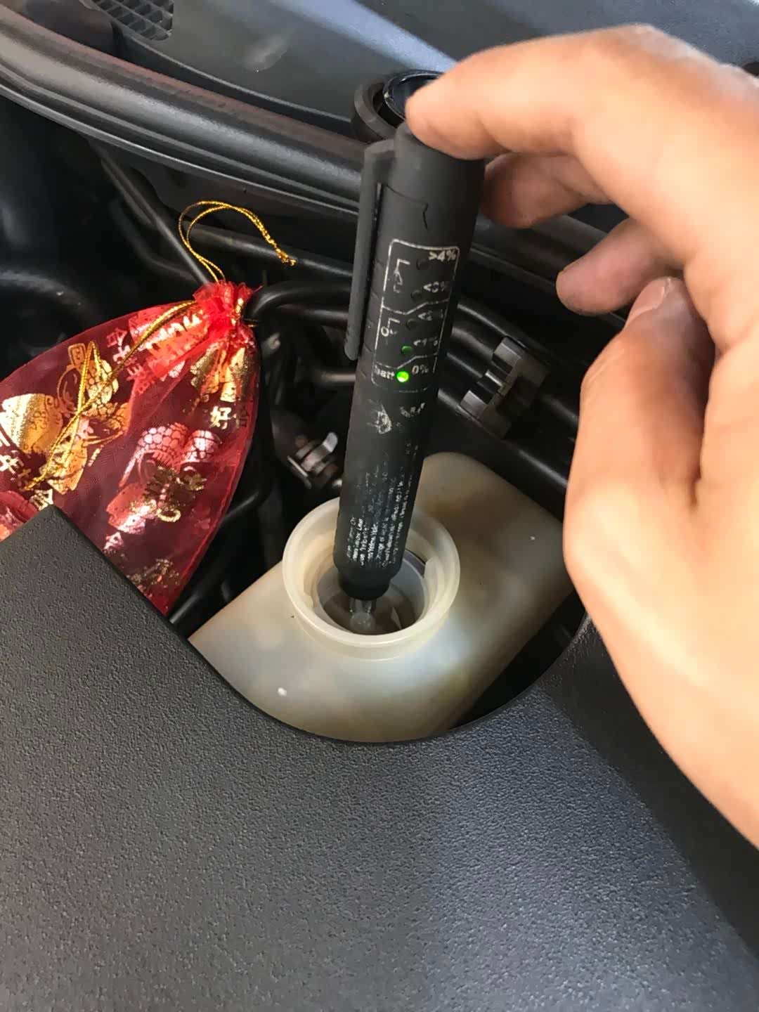 拿出仪器,刹车油检测一番下来也是比较OK的未发现含水量超标、刹车油变质等问题,像是有一定年头的车更是要检测到位!