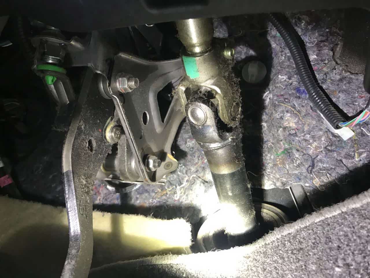 从驾驶台下部观察,方向管柱也是嘎嘎新,新的一塌糊涂、连一点锈渍都没有,只是简单的有点粘土,一句话完美。