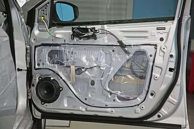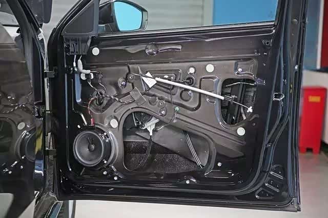 轩逸前后均为拼接车门,前车门内置管型梁+帽型加强筋+止震贴,车门腔体采用塑料布进行密封;后车门内置管型梁+帽型加强筋+止震贴,车门腔体同样采用了塑料布密封。
