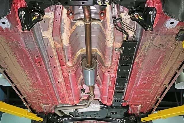 逸动车身底板布置了四道贯穿式纵梁,包围了整个乘员舱,加上左右两侧的门槛梁,逸动乘员舱底板外侧共计设置了6道纵梁,配合排气管通道及其横向加强,对提高车身整体刚度和抗扭度有着积极作用。