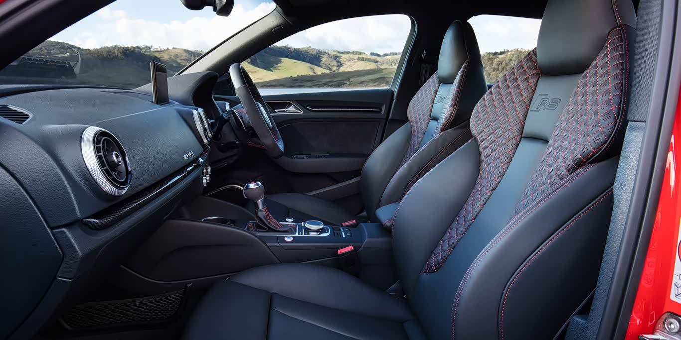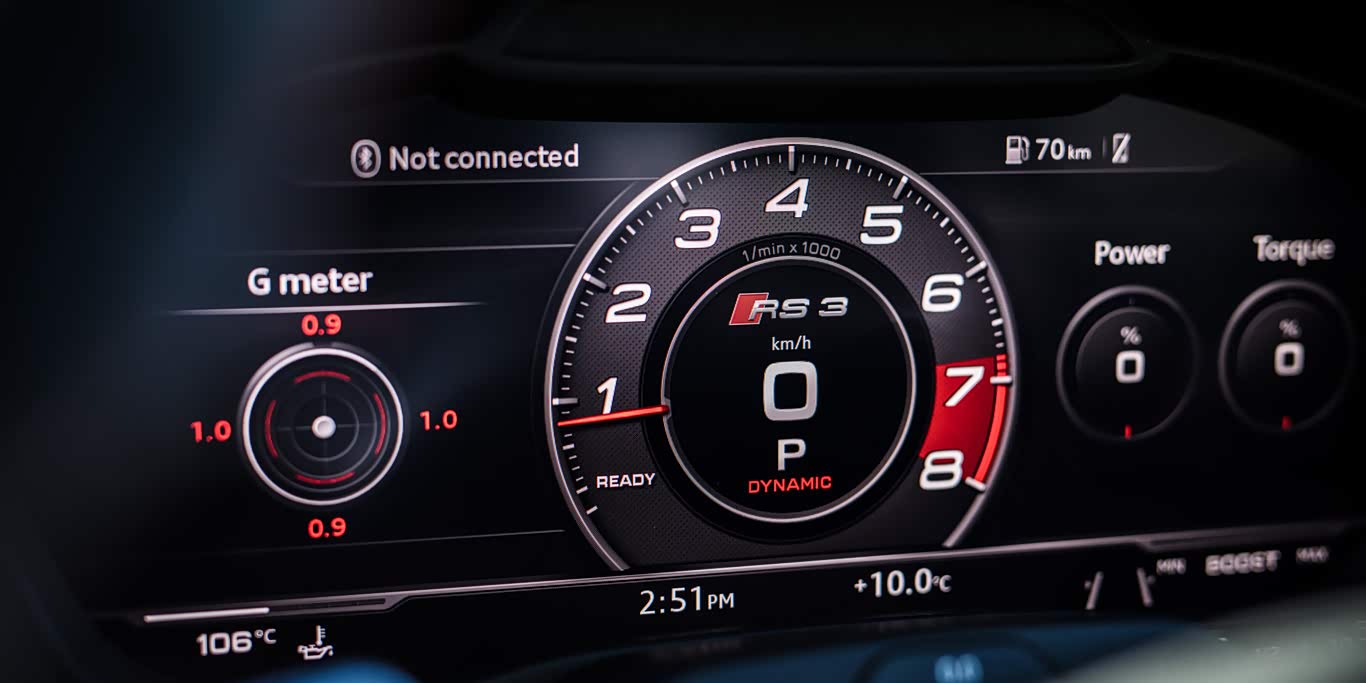 RS3很轻松地在这三者中成为了一款日常“最好开”的车。首先,它的方向盘电子辅助较轻,所以在低速行驶的情况下很舒服,它的座椅也很舒服;在普通模式下它和S3的区别并不大,很像是一部稍微加强了排气的高尔夫R,一款非常适合日常代步的“披着羊皮的狼”。其次,它的四驱系统在如今的汽车市场上也算是数一数二的,Haldex 5是一套真正意义上的全时四驱,虽然它在平时任然是偏向前驱的设定,但是当你将车辆推向激烈驾驶之后,你可以很明显地感受到在高速过弯的情况下这套电子系统的工作,将扭力分配给后轮,从而减少推头的现象。所以它也是可以非常轻松就跑到最快的车,给予你十足的信心,车辆在每个弯道就像被重物死死地压在轨道一样。