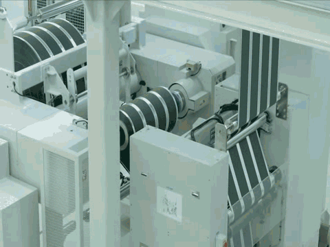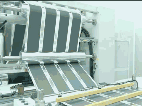 在这里,用模切机模切形成电芯的导电极耳。极耳是电池头上的耳朵,通俗地说就是电池正负极的耳朵在进行充放电时的连接点。