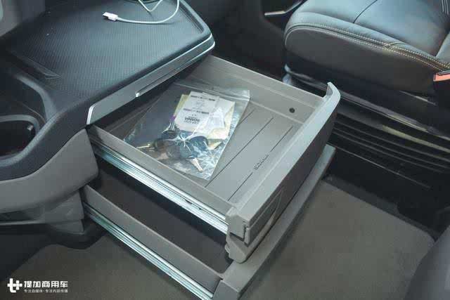 卧铺下面2个抽屉,其中一个选装了车载冰箱。