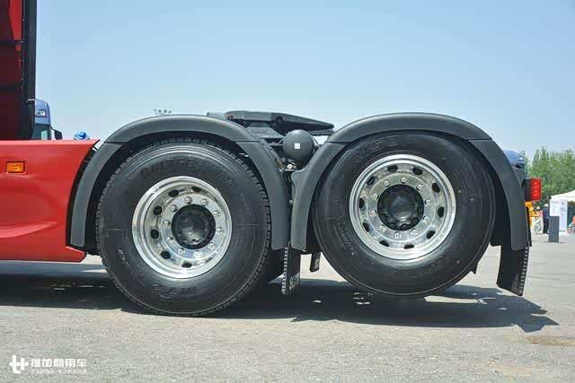驱动形式还是进口车常用的6x2后提升,前轴2片钢板弹簧悬架,后轴钢板拖曳臂+2气囊空气悬架,后悬架和提升桥的布置和上一代车型几乎没有区别。