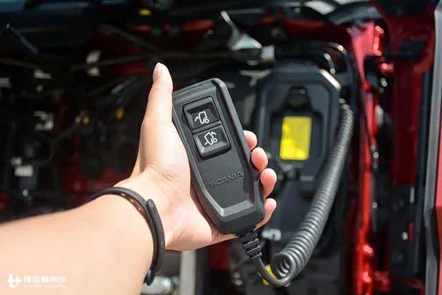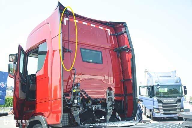 全新一代斯堪尼亚在国内销售的车型都多了一个手动调节顶部导流罩功能。以前的手动调节都需要爬到驾驶室顶部去拧螺丝,繁琐的过程让“可调节”成了摆设。新一代斯堪尼亚的手动是多加了一个摇把,站在驾驶室后面的工作平台上就能轻松摇动,改变顶部导流板的高度。目前未上市的陕汽X6000系列车型也有同样的配置。