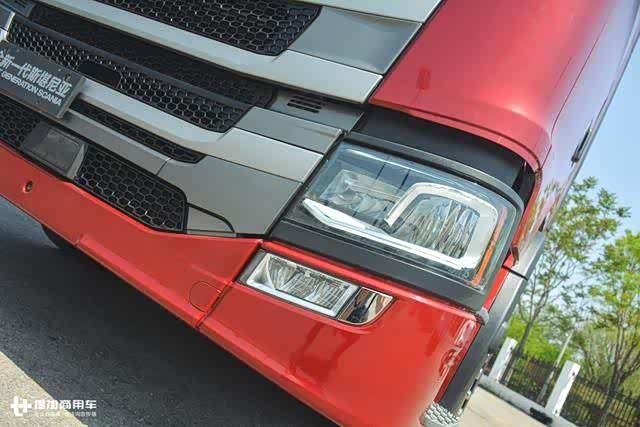 需要单独说的是新一代斯堪尼亚在国内销售的车型都没有配备遮阳罩,原遮阳罩上的示廓灯隐藏在挡风玻璃两个角落,一体性更强。随着技术进步和对油耗的高要求,遮阳罩已经不具备实际实用价值,遮阳?有紫外线挡风玻璃就够,除了增加风阻增加油耗和一点装饰作用外,完全是多余的存在。所以就不要纠结遮阳罩,德国曼EfficientLine高效版牵引车、奔驰新/旧Actros等车型在国内早就取消了遮阳罩。