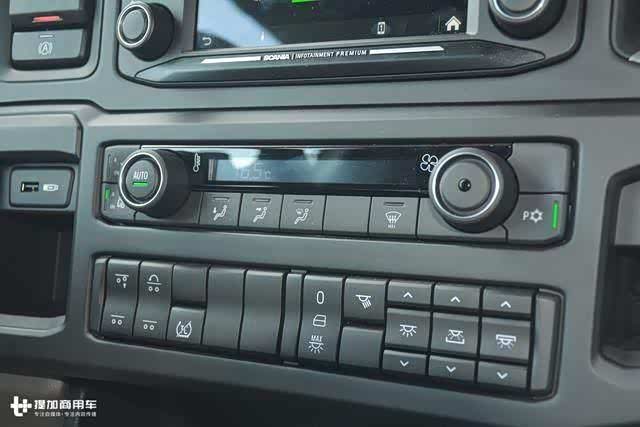 对内饰挑剔的人进到斯堪尼亚S驾驶室里面都挑不出什么毛病,设计感和档次感都很强。整个仪表台的轮廓和上一代差不多,都是港湾式的仪表台布局,把所有的按键和空调出风口等都重新设计,加入更多直线元素,最终出来的效果就是这种偏硬朗的风格,线条感很强。