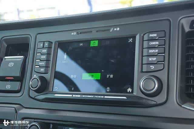 新一代斯堪尼亚仪表盘分高低配两种,低配仪表朴素一点,中间液晶显示屏尺寸小。高配的仪表盘中间是不规则的液晶屏,左右两个圆形指针仪表盘中间分别还有两个单色液晶显示屏,多层次的设计再加上丰富的配色,高配仪表盘的设计甚至可以秒杀一些乘用车。