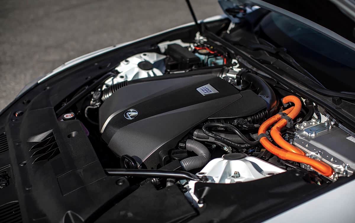 既然是高科技超跑,那混动技术一定是当今的主流动力单元。一台3.5升V6自然吸气发动机可以输出299马力的最大输出功率,与之匹配的还有一台可以输出179马力的电机,传递部分则是一台模拟10速换挡的E-CVT+自动变速箱。