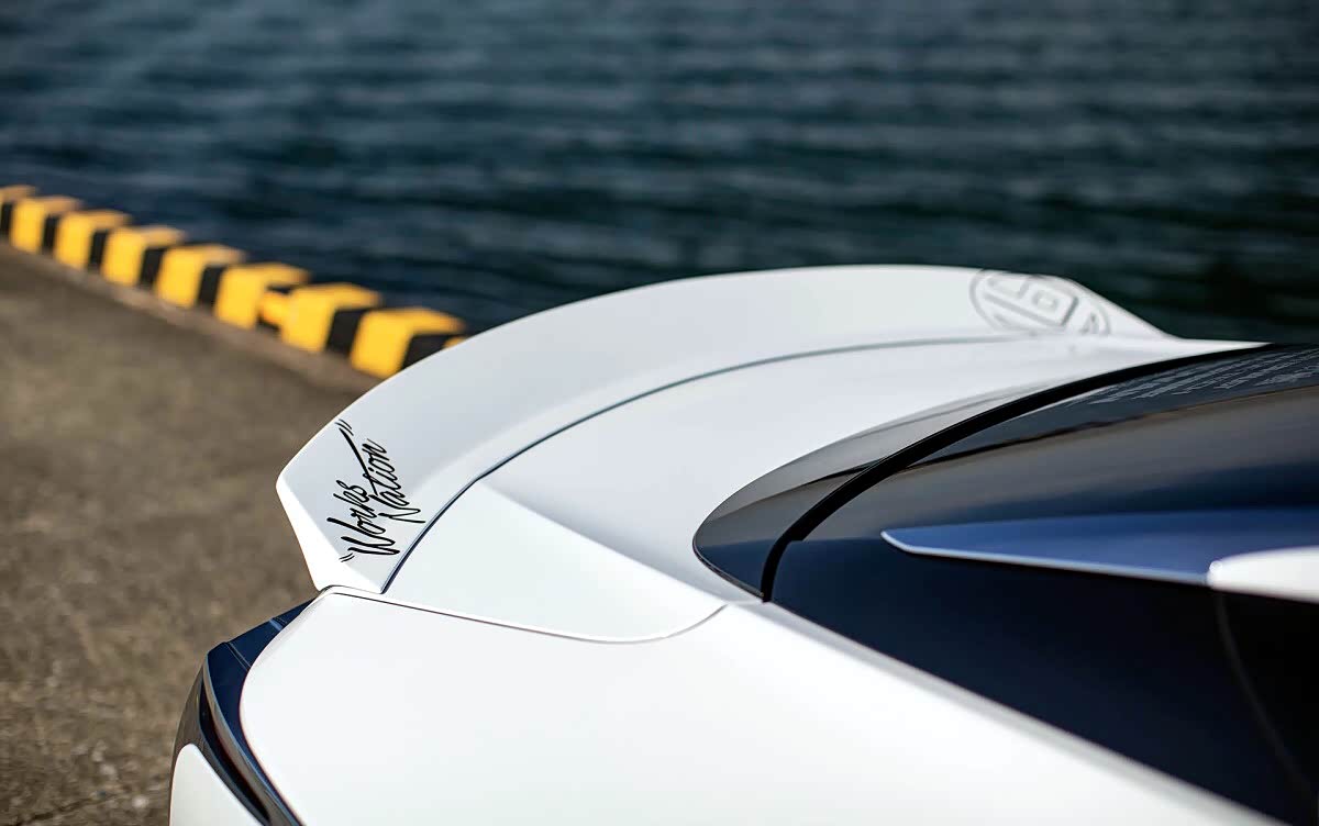 车尾的设计非常性感,双边共四出的排气系统配合车尾的鸭舌扰流板提升整车的运动气息。后轮的倾角极度迎合宽车体套件,所产生的效果就是非常饱满充实的视觉体验。