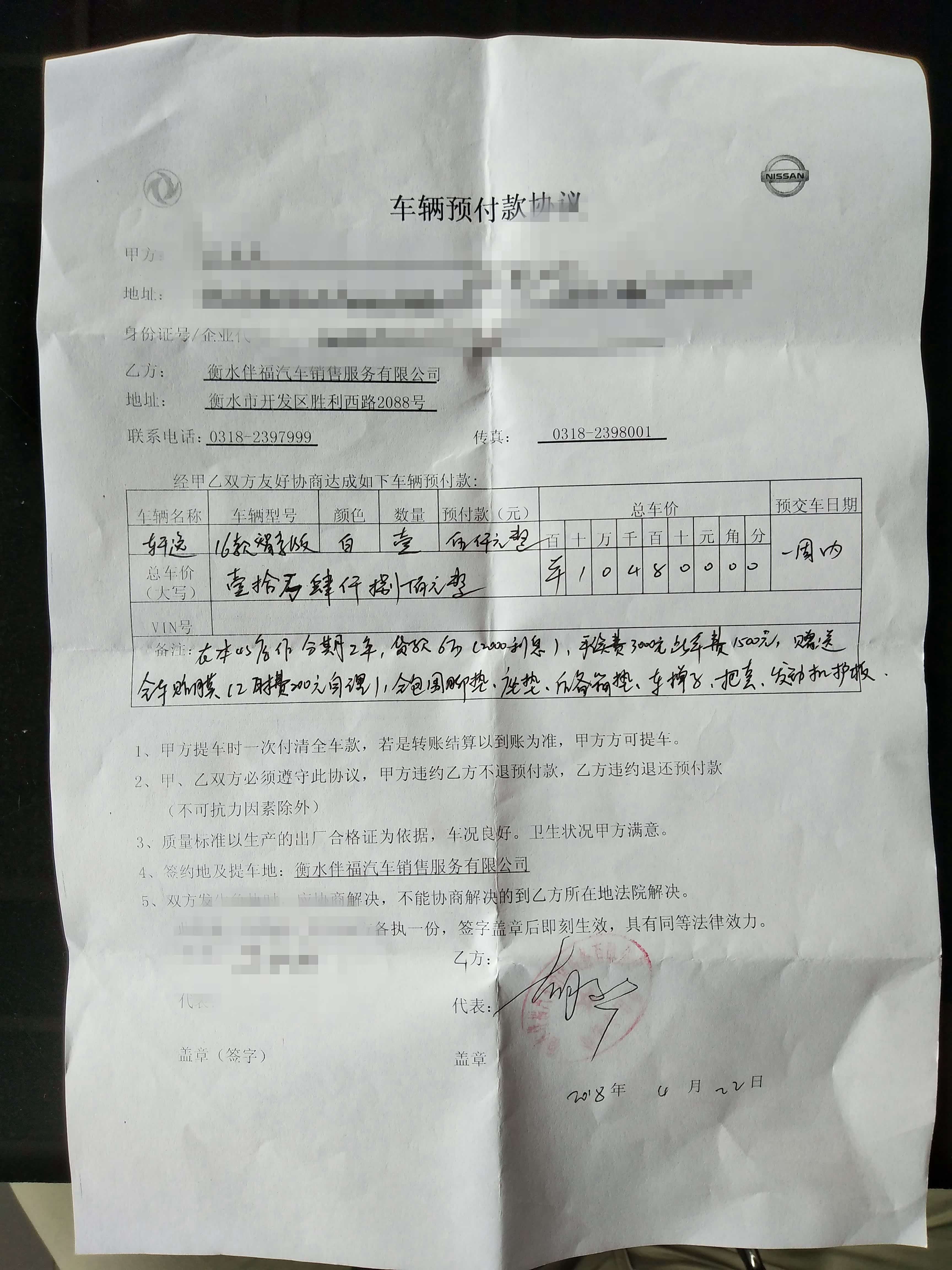 此外这份所谓的“车辆预付款协议”还有不小的瑕疵,比如第2条,如果消费者违约不退预付款,经销商违约则退还预付款。这显然是有失公平的,经销商违约仅需退还预付款而无需承担额外的责任,那对于经销商有何约束力?