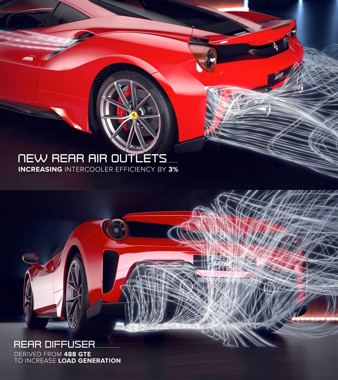 嗯,这台车的空气动力学和性能才是值得你去关注的,是最赛道取向的空气动力学方案,灵感源自 488 Challenge、488 GTE 及 F1 赛车,在拍摄这台车的前后,我把官方视频里关于空气动力学介绍看了好几遍。