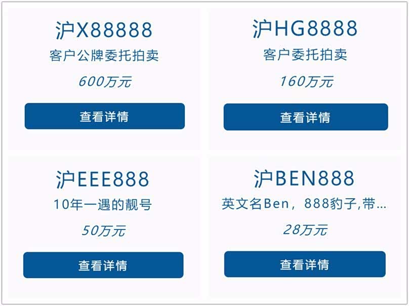 五个八车牌开价600万,四个八是160万,三个八分别是50万和28万。普通老百姓很难用得起,看看就行了。