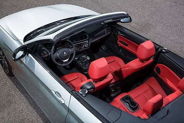 宝马2系定位1系和3系之间,实际上是1系的双门、敞篷版本,因此尺寸不算大,4.4米的车厢长度下安排了4个座椅,因此,2系敞篷是为数不多的的,可以带朋友一起享受敞篷拉风的轿跑车,虽然车身小小的,但车头的宝马LOGO也很吸引人。