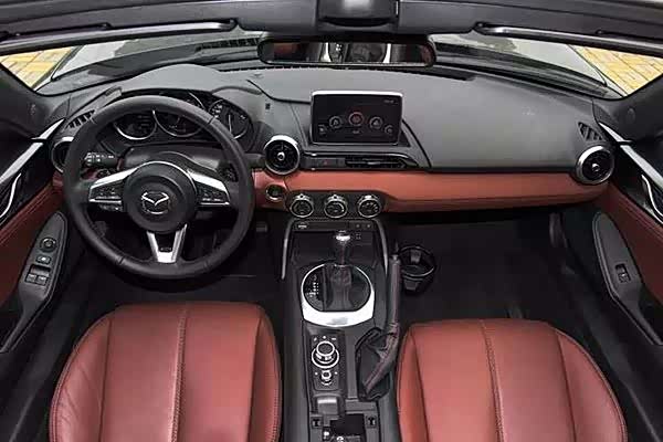 马自达MX-5采用前置后驱的设定,外形动感精致,内饰棕红色Nappa真皮,Bose音响以及漂亮的中控台都很显档次,这款车打开折叠敞篷只需13秒,这也是这3款敞篷跑车中唯一的折叠硬顶车型。