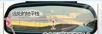调整要领:水平摆中间、耳际放左边。即远方的水平线横置于中央后视镜的中线位置,然后再移动左右,把自己的影像放在镜面的左边缘。