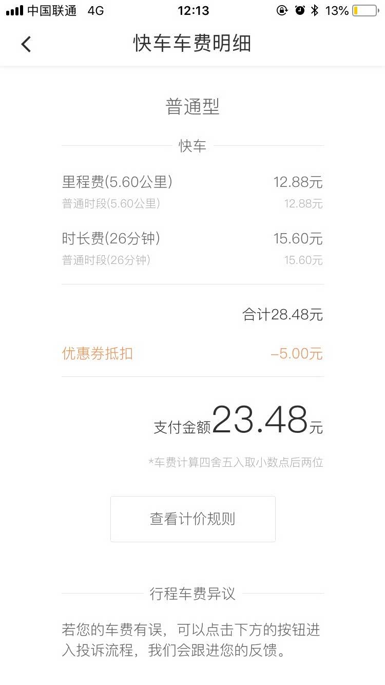 可以看到,不算优惠,这次多花钱的变成了安卓手机,比苹果手机总车费多出0.3元。这多出的费用同样来自里程费,只不过多花钱的变成了安卓手机。