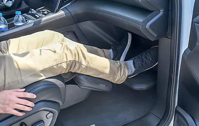 再如亲子模式。副驾驶座的滑轨特别长,副驾座椅可以一直向后贴近第二排座椅。副驾乘客可以跟第二排的小孩,老人或朋友贴近距离亲密交谈,非常方便。