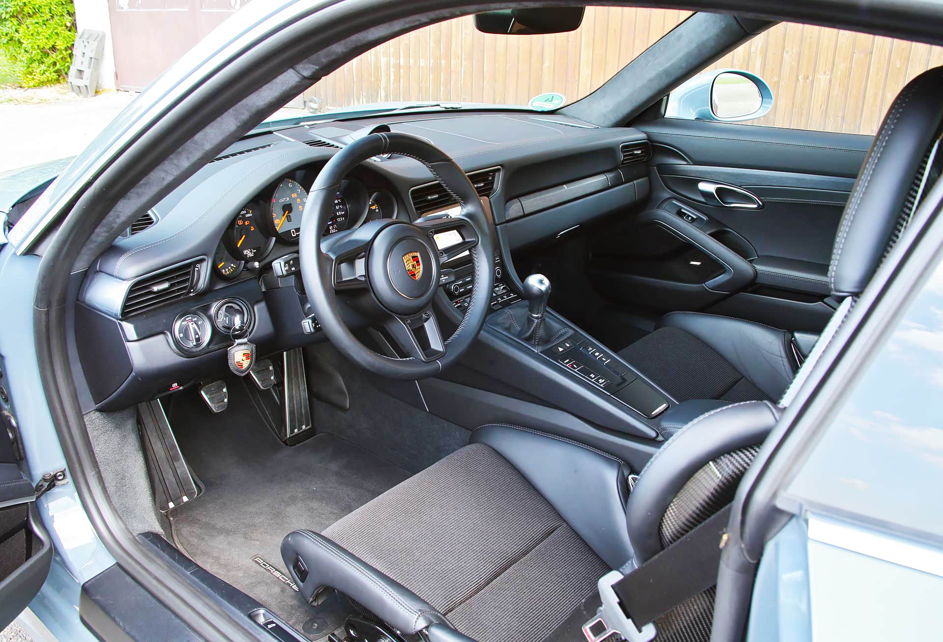 不仅仅是外观,911 GT3 Touring的内饰风格和标准的GT3也截然不同。她不仅没有后座而且不提供Club Sport选装包,这意味着不能选装防滚架。此外911 GT3上的Alcantara麂皮装饰也被织物取代了。