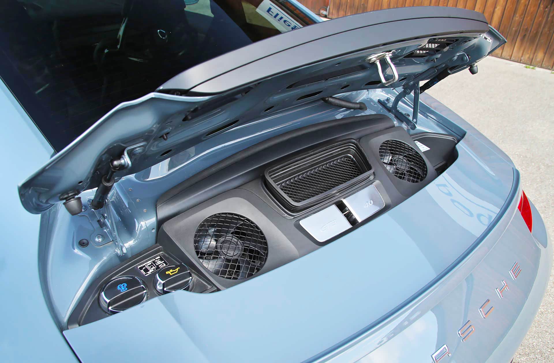 水平对置6缸发动机的活塞行程为102毫米,缸径为81.5毫米,综合排气量达到了3996cc。由于采用了部分只有911 RSR赛车才有的技术,所以这款911 GT3 Touring的发动机转速高达9000转/分,压缩比为13.3:1,升功率125.1马力/升。