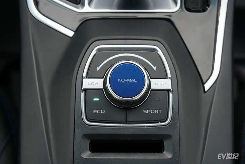 在档杆的后方是车辆能量回收和驾驶模式的选择,帝豪EV450支持能量回收强度的三档调节,并提供“ECO”经济及“SPORT”运动两种驾驶模式。