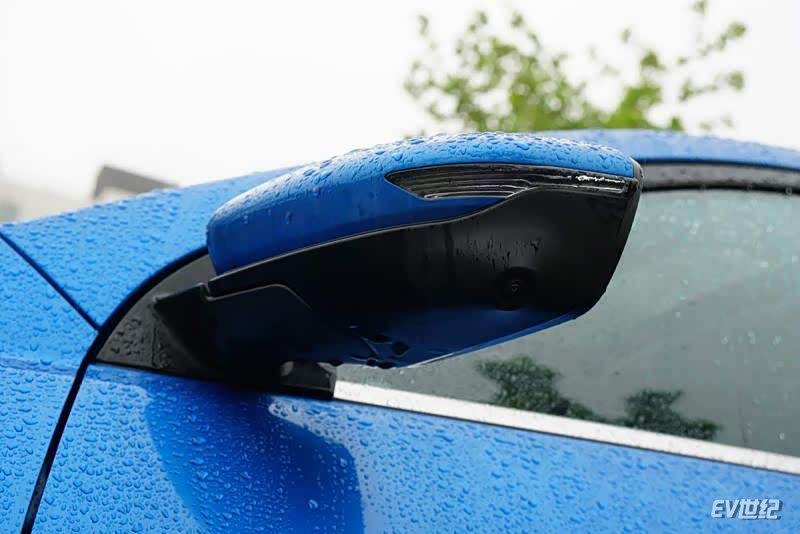 两侧后视镜上集成了LED侧转向灯及用于全景影像系统的摄像头,左右前车门上还贴有“EV450”字样的镀铬铭牌。