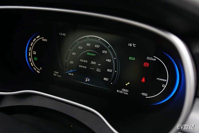 仪表盘也采用了全新的设计,左侧为电量表,右侧为功率表,中央有一块7英寸的液晶屏幕。