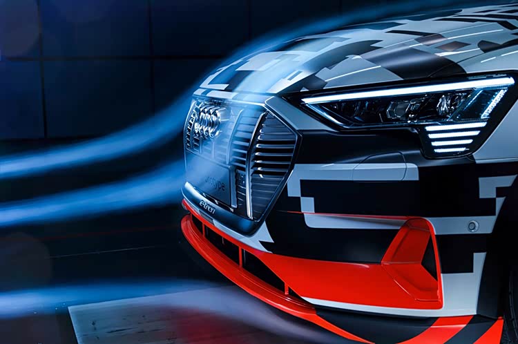 除了可选虚拟后视镜,为了进一步优化车辆空气动力学表现,其还将配备自适应悬架系统。当系统检测到车速高于120km/h时,悬架将自动降低2.5cm。同时,车辆还将配备有主动进气格栅系统,当传动部件或电池组需要冷却时,电机将控制格栅自动打开。此外,电脑监测到制动系统温度过高时,也会打开相应区域的格栅,加以降温。得益于这些设计,e-tron量产版风阻系数Cd值被控制在0.28,根据计划,其将在今年年底率先在欧洲销售,随后推向其他市场。
