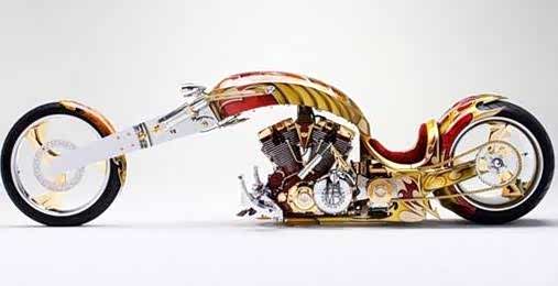 价值人民币1948万元-The Yamaha BMS,这辆超酷炫的重机有著1700cc的V型双缸引擎。爆发力就是它最主要的特点,而惊人的价格也是因为它的设计实在太独特,像是它的车座是能够体现豪华的酒红色、且车身则是镀上24K金。