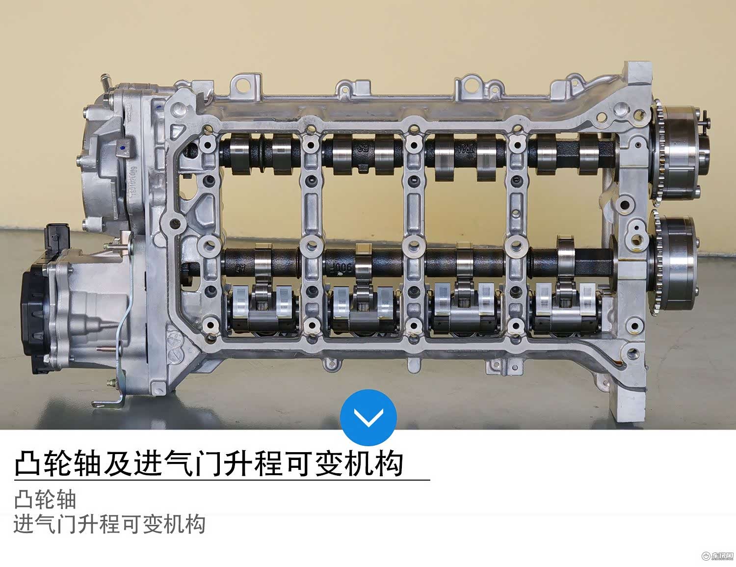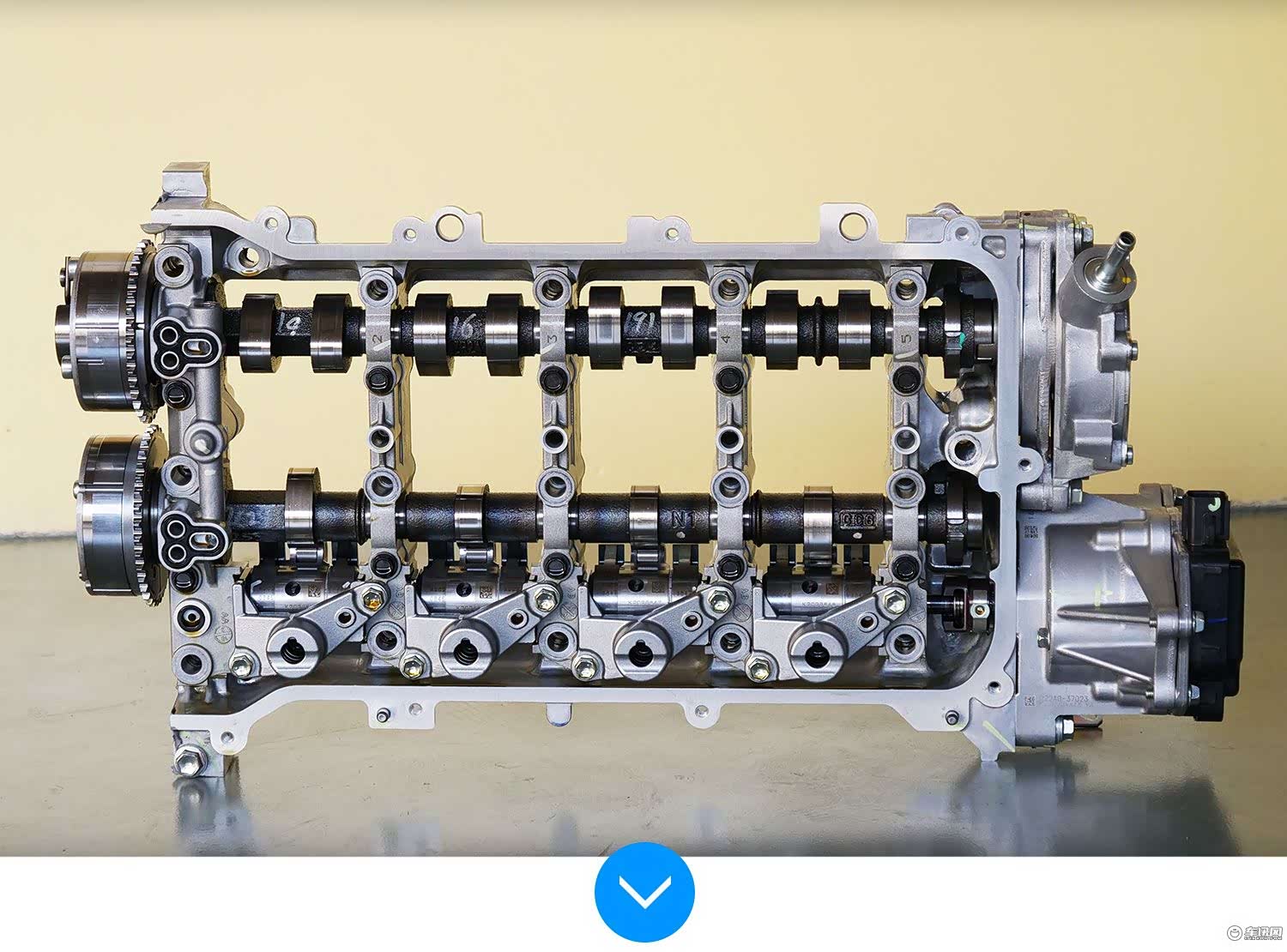 缸盖后端设置了连续可变气门升程控制等组件,这也是这台发动机中最为核心的机构之一。